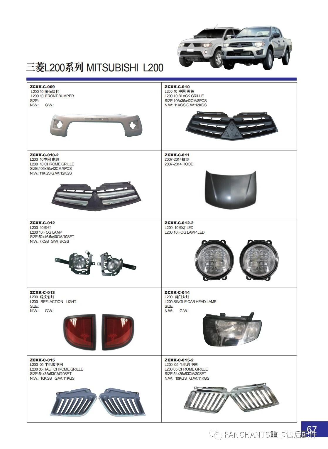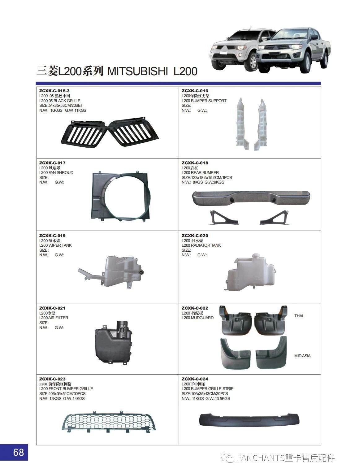 ZCXK-C-009 L200 10 前保险杠 L200 10 FRONT BUMPER SIZE: N.W.: G.W.: