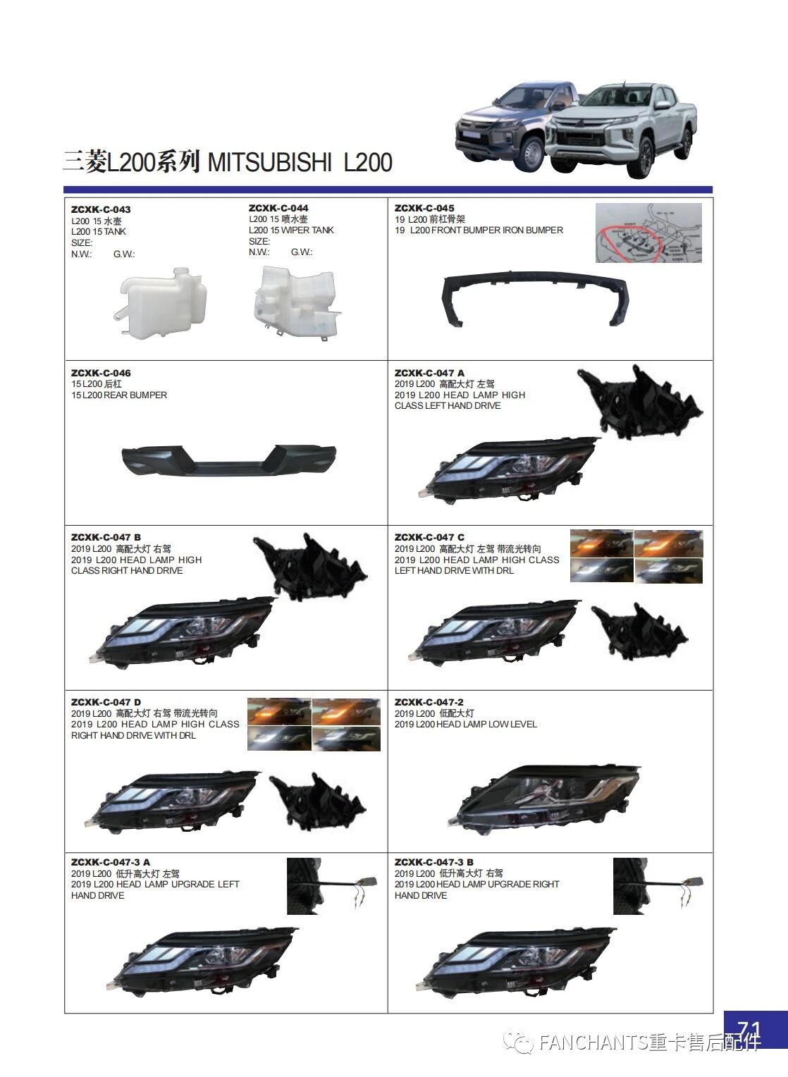 ZCXK-C-047-3 A 2019 L200 低升高大灯 左驾 2019 L200 HEAD LAMP UPGRADE LEFT HAND DRIVE |