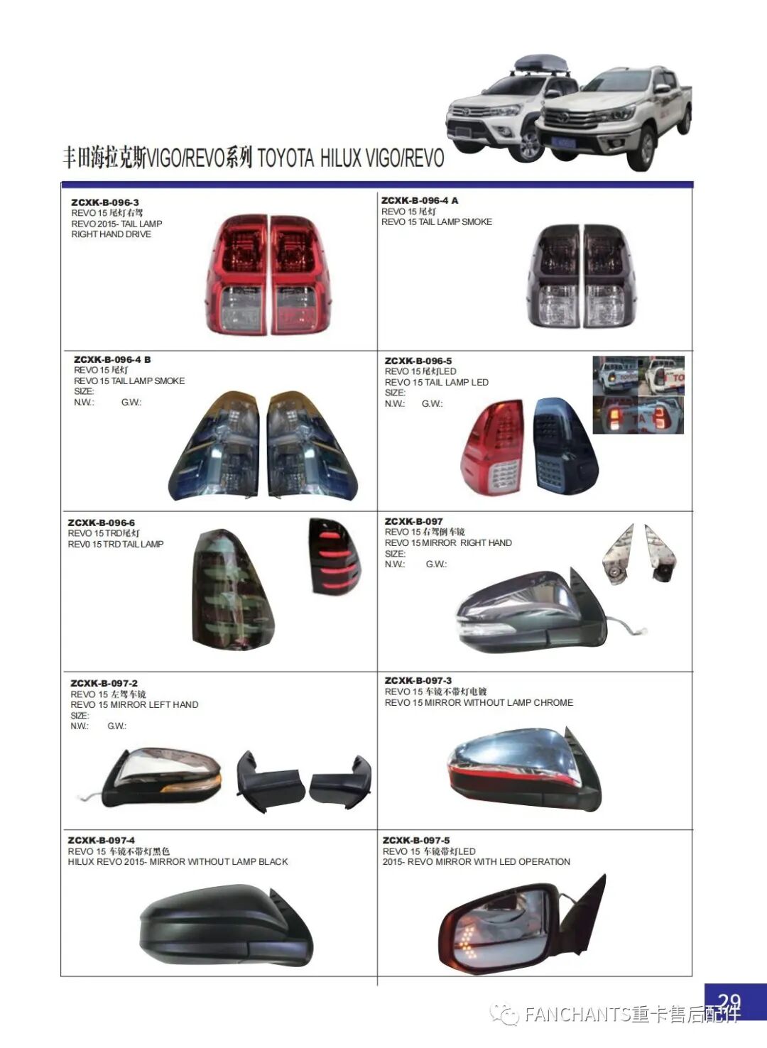 For TOYOTA HILUX VIGO/REVO Series Headlights, Tail Lights, Mirrors, Grilles, Bumpers, Fog Lights, Doors, Hoods